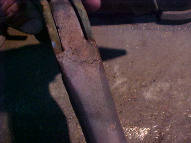 Picture to the right is of the shaft strut. As you can see it is bent with an offset of approx. 1 inch. We are attempting to straighten it out, other wise it will be an expensive buy. Keep your fingers crossed for a good fix!!!